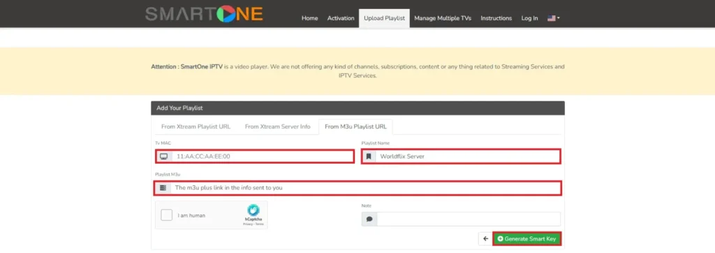 - Ajoutez l’URL de votre liste de lecture IPTV M3U ou les codes Xtream fournis par votre fournisseur de services IPTV.